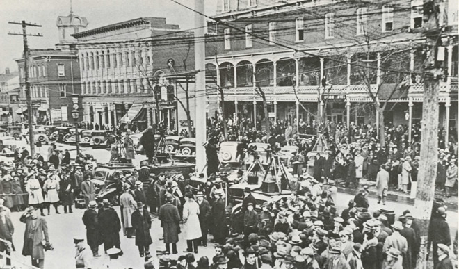 About 10,000 people crowded into Flemington in February 1935 to await the verdict of Bruno Hauptmann, who was on trial for the kidnapping of the child of Charles and Anne Lindbergh.